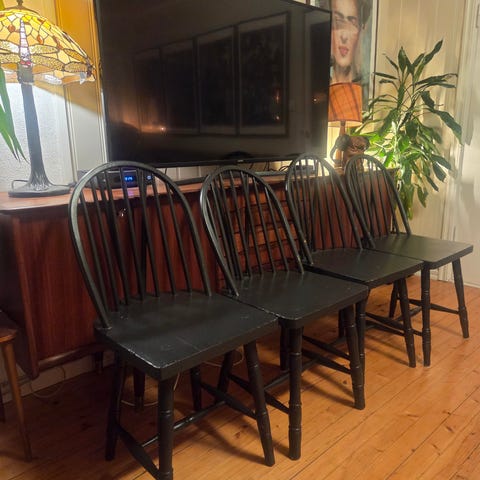 6stk budalstoler selges samlet. Delevis restaurert.