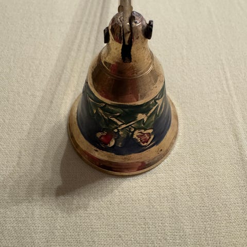 #vintage #messing #julepynt #dekor #retro #bjelle #lyd #samlerobjekt #bladmotiver #blåemalje #grønnemalje