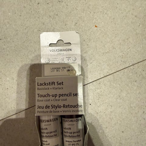 Litt brukt Lakkatift VW Limestone Grey Metallic, touch up paint, inneholder både base og klarlakk