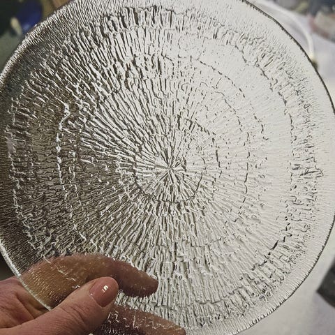 Iittala glasskåler med strukturert overflate. Settet består av flere skåler i klart glass, egnet for servering og oppbevaring av mat.