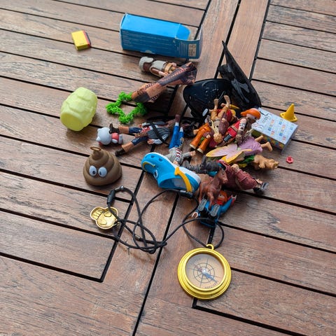 Massevis av leker til salgs. Sønnen min sparer til nye prosjekter. Lego Duplo, Playmobil, et slott med riddere på hester, masse bøker og diverse klosser, Paw Patrol-kosedyr og mer.
