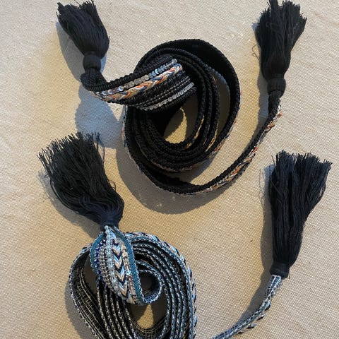 Valentino Dame belte i gullfarget skinn med metallspenne formet som bokstaven V. Beltet har en lengde på ca 105 cm. Aldri brukt.