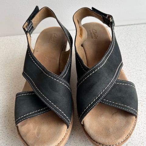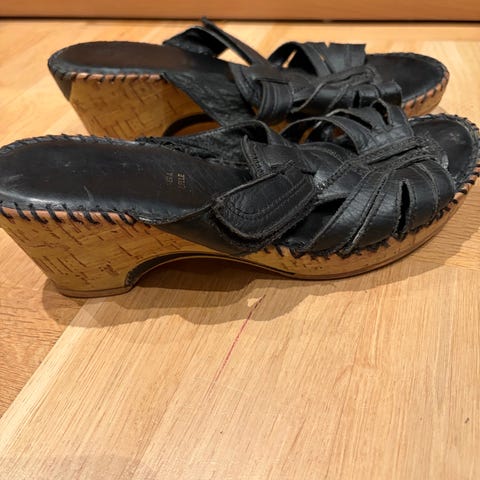 Lite og pent brukte Rieker Sandaler, størrelse 38, svart. Laget med justerbar spenne og en komfortabel såle med korkdetaljer. Passer for daglig bruk og gir god støtte og komfort.