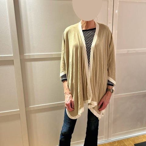 Poncho i ull med høy hals, beige/brun, lite brukt. One size.