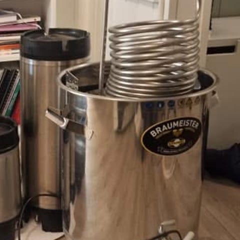 Inkludert ekstra meskerør på 20 ltr, 50 ltr gjæringskar, kjøler, 20 ltr vannkoker , gjæringskar med mye mer. Kan hentes på Vikhammer.