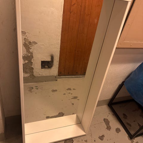 Vegghengt hylle med speil- ubrukt, men liten ripe i speil