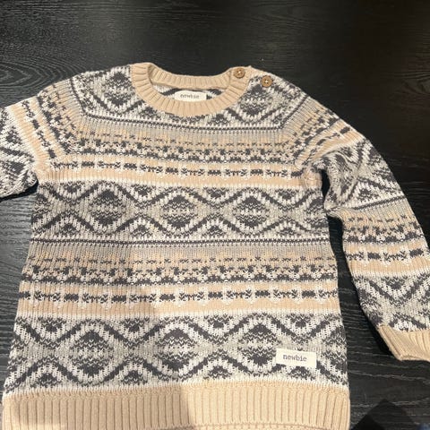 Pent brukt genser fra Hust & Claire i størrelse 116. Ingen anmerkninger foruten at det mangler en hempe bak på ryggen for at kneppe knappen.