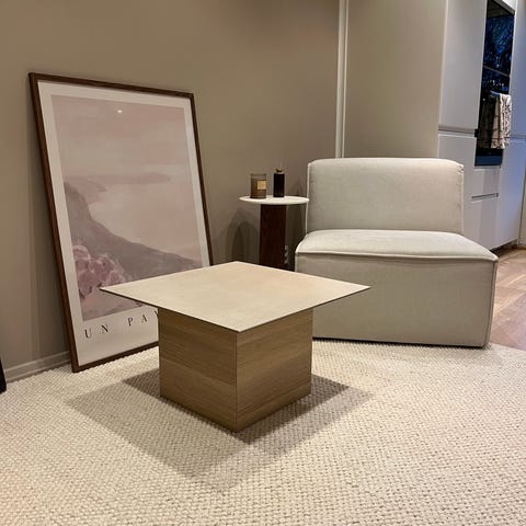 Kvadratisk bredde 68 cm og høyde 48 cm.