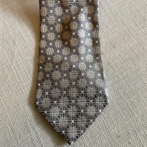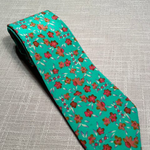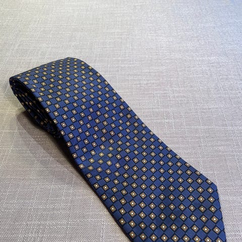Selger et nydelig slips fra italienske Viola Milano, i stort sett ubrukt og helt strøken tilstand. Et klassisk og tidløst design med små blå blomsterdetaljer på en diskret bakgrunn – perfekt til både mørke og lyse dresser.