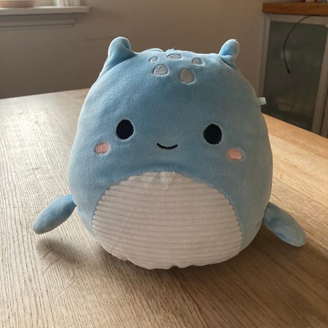 Squishmallows Pyle barn leketøy i mykt materiale med blå og lilla farger. Passer som kosedyr eller dekorasjon for barn.