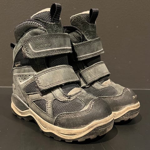 Selger et par pent brukte Ecco Snow Mountain GoreTex vintersko str 33. Sort farge. Lite bruksslitasje, foruten på skotuppene. Flotte vintersko med masse bruk igjen!