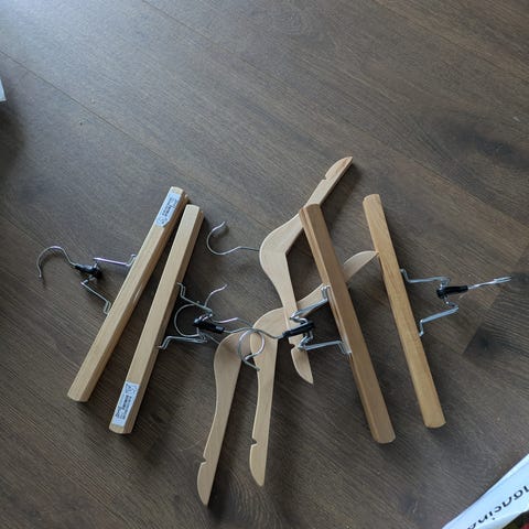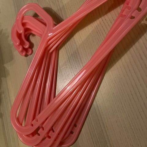 IKEA barnekleshengere i flere farger. Hengerne er laget av plast og egnet for barneklær. Har 65 stk selges for 2kr stykket så samlet 130kr