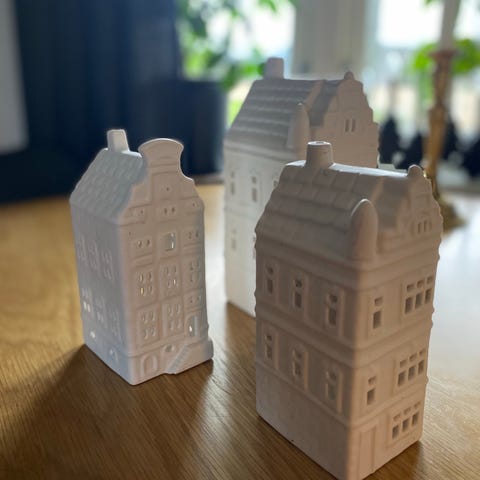 Lyshus og trær håndlagede.