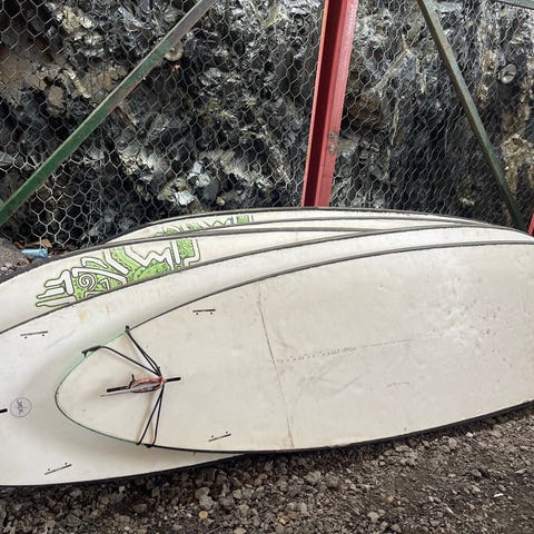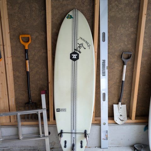 The board hasn't been in the water, literally brand new, and it comes with a brand new tail pad and brand new future fins.