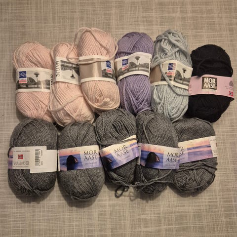 Garnpakke med ulike farger og materialer ull bomull !!!Ny!!!