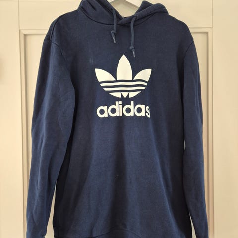 Adidas Genser Hettegenser i størrelse 176 tilsvarer ca. S, farge grå, laget av bomull. Genseren har hette og klassisk Adidas-logo på forsiden.