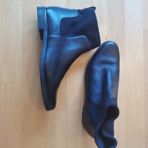 Svarte vintersko fra & Other Stories i ekte skinn.