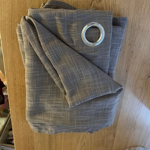 2 stk Otto gardin mørkegrå lengde 2,40 cm selges samlet kr.250. Kun pakket ut - ikke brukt.
