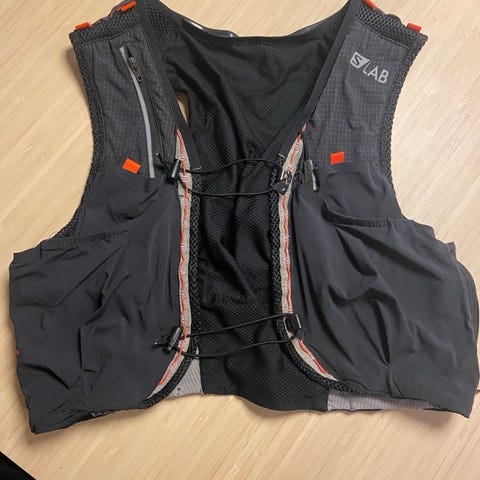 Pent brukt løpevest som har praktiske lommer på skuldre og ryggen så det er lett å ta med vann, nøkler og mobil blant annet. Har refleks både foran, bak og i siden og justerbare stropper i siden.