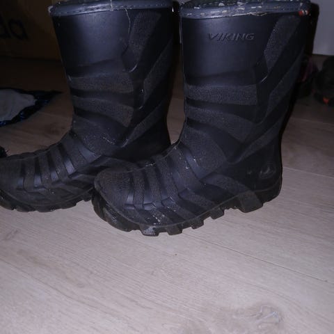 Viking barnestøvler i størrelse 33, unisex. Støvlene er svarte og laget for barn. Egnet for bruk i våte og gjørmete forhold.