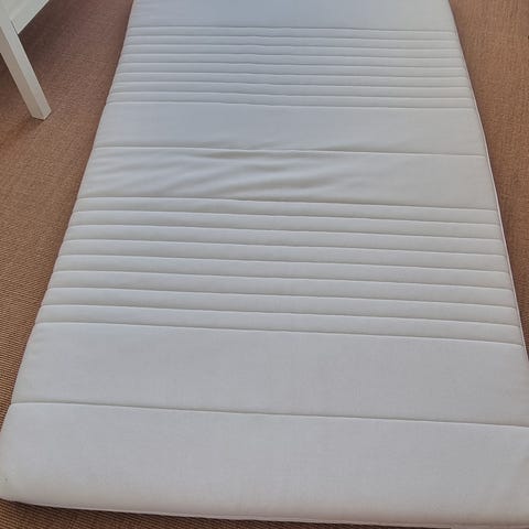 Madrassen har ligget på en gjesteseng og er lite brukt. Det er ikke noen flekker på den, den er helt som ny.