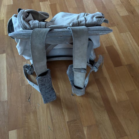 Godt brukt Bergans meis retro ryggsekk. Ser at den har vært reparert et par steder, noe som tyder på mye bruk. Gøy å bruke på søndagsturen!