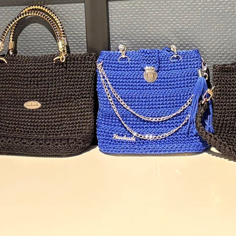 Nydelige heklede vesker selges