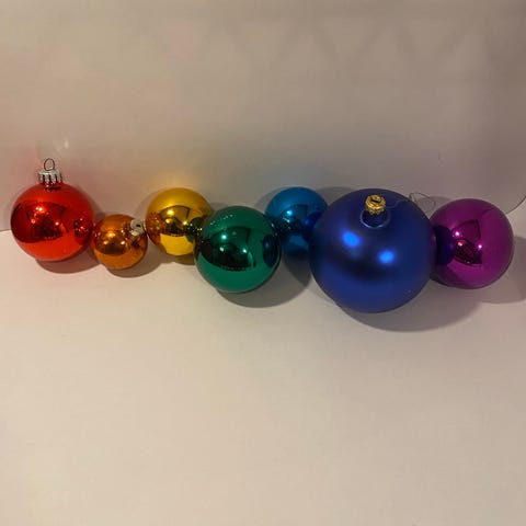 Julepynt. Julekuler i plast fra 1960-tallet.