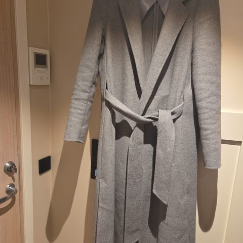 Holzweiler Kåpe i oransje farge, størrelse M for kvinner. Laget av 90%ull og 10%viscose, gir varme og komfort. En lang kåpe med knappelukking og to lommer foran. Størrelse M (stor i str).