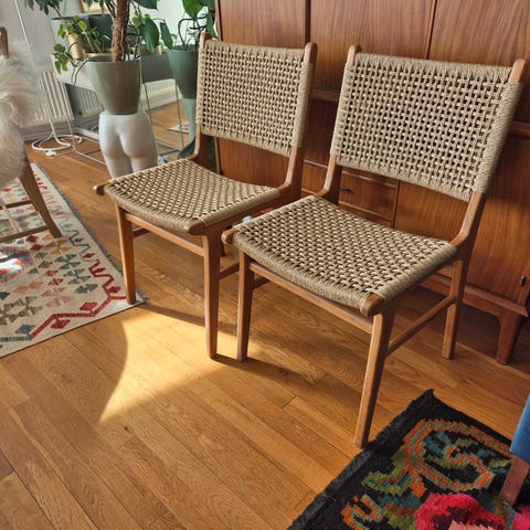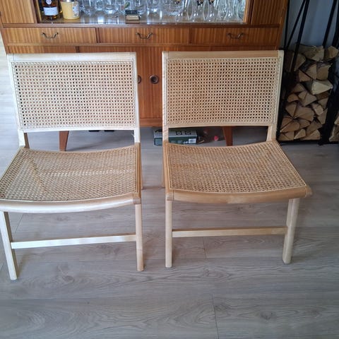 To bambusstoler selges. Noen bruksmerker. Kan brukes inne eller ute. Må hentes!