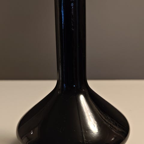 Har en retro vase fra foreldrene mine. Tipper de fikk den i bryllupsgave i 1956. Vasen har blitt flittig brukt under hele min oppvekst på 60-tallet. Det er så vidt jeg kan se, likevel ingen bruksmerker på vasen. Vasen er tung og med en sokkel, slik at den står stødig.
