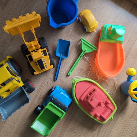 Helårs, uteleke/inneleke til barn. Selges da vi ikke har så små barn lengre. Lastebil med lasteplan som kan løftes. Farge: Blå og grønn. Hentes etter avtale.