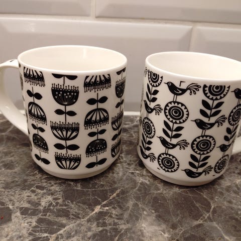 Flott ubrukt krus i eske med dekor fra 1990 tallet.