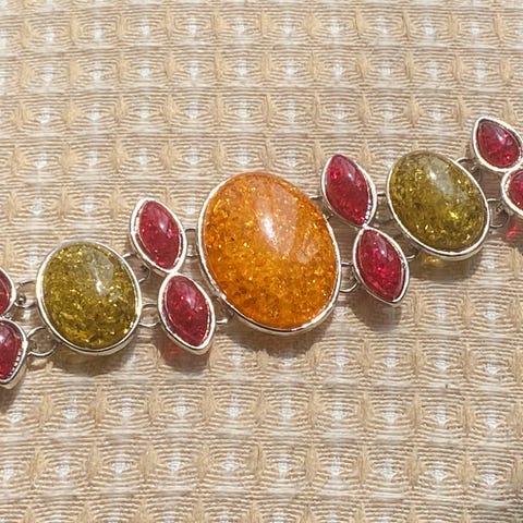 Vintage emaljert armbånd. Armbåndet og ringen har emaljerte marihøner. Ingen skader. Ble gitt som dåpsgave på 1960,70 tallet.