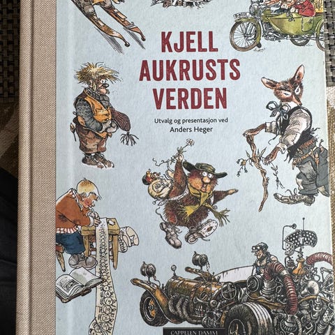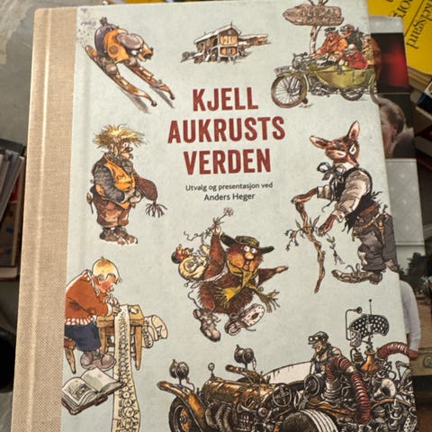 Innbundet bok på 332 sider gjennomillustrert med Aukrust tegninger.