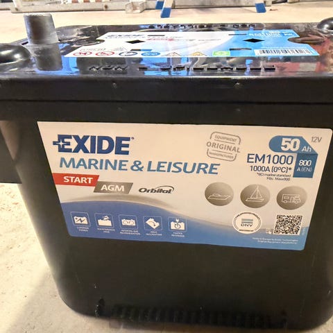 Tåler vibrasjoner og kraftig helning, men er ikke egnet som startbatteri