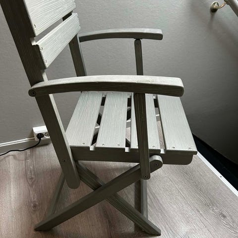 Jeg selger to solide, overraskende tunge hagestoler kjøpt på Rusta for et par år siden 🪑🪑.