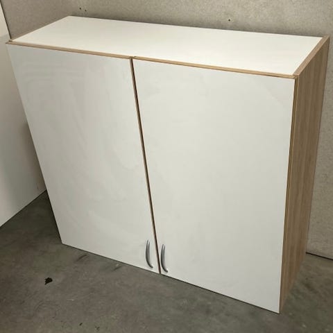 Selger 2. stk brukte IKEA overskap. Dør er høyglans hvit av typen RINGHULT, men uten håndtak. Følger med en del hylleplater. 500,- stk pr stk eller 750,- for begge.