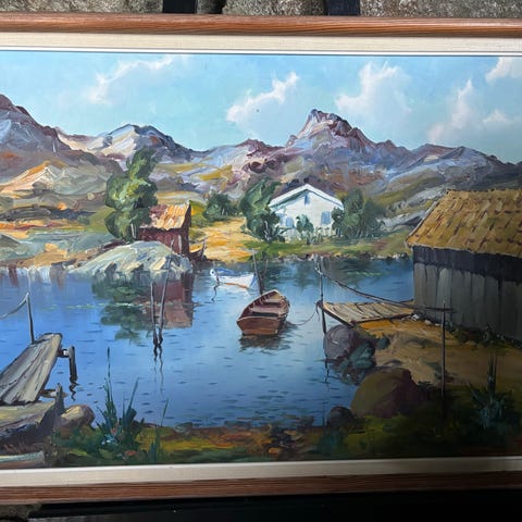 Vakkert Landskapet maleri med signatur B= 80cm H= 60cm detaljer som vises på bildet kan sendes hvis ønskelig