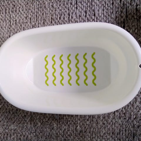 - Sklisikre ben: Gummierte føtter som holder badebaljen på plass.
