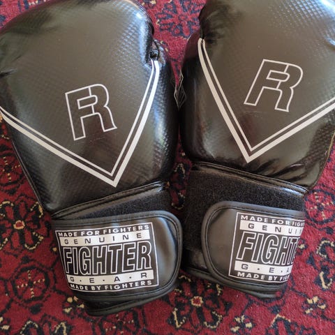 Veldig lite brukt. Ingen bruksmerker på noenting. Stor treningsbag med masse plass til boksehansker og sko.