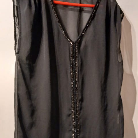 B young bolero i svart, str 38 . Se bilder, nær bilde av glitterstoffet. Henger bedre på en person enn slik det kommer frem når den ligger på bordet!