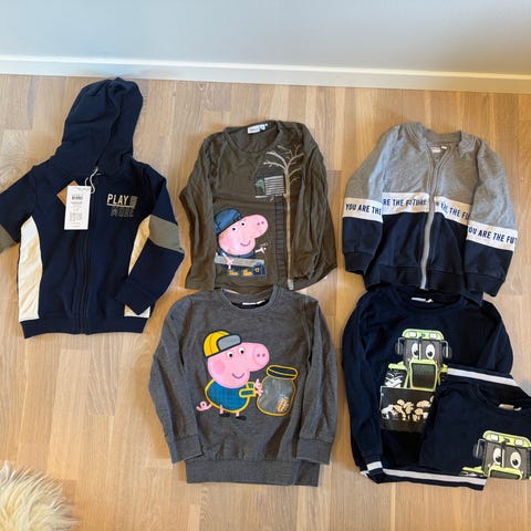 Name it barneklær bukser i størrelse 104 for gutt. en treningsdress og tre bukser