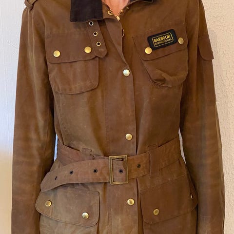 Barbour jakke, vokst bomull. Små i str. Denne er str 48. Jeg bruker 42-44. og denne passer meg . Jeg er 175 cm lang . Barbour lang kåpe i grønn farge. Kåpen er designet for å gi beskyttelse mot vær og vind. Laget med fokus på funksjonalitet og komfort.