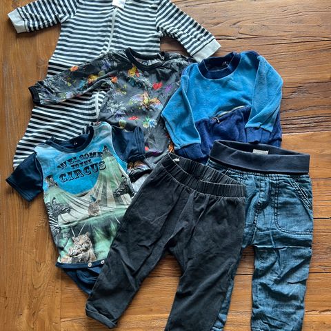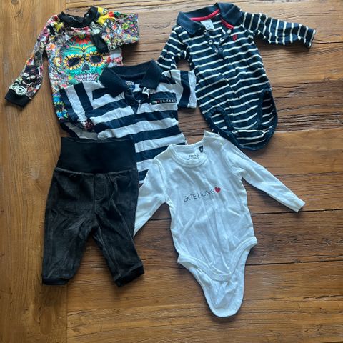 Selger babyklærne på bildet, som en klespakke. Klærne er nesten ikke brukt. Kjøpt nye sommeren 25’. De er vasket og har kun vært i et røyke- og dyrefritt hjem.
