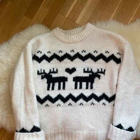 Genser i svart og hvitt med flott snøkrystall-mønster.