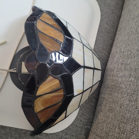 Bordlamper laget av messing med glasspaneler. Lampene har dekorative detaljer i metall og en kombinasjon av klart og frostet glass. Passer til stuer, entre. Kan sendes mot tillegg, Kan levere på strekningen Askvoll-Bergen, Askvoll-Sogndal