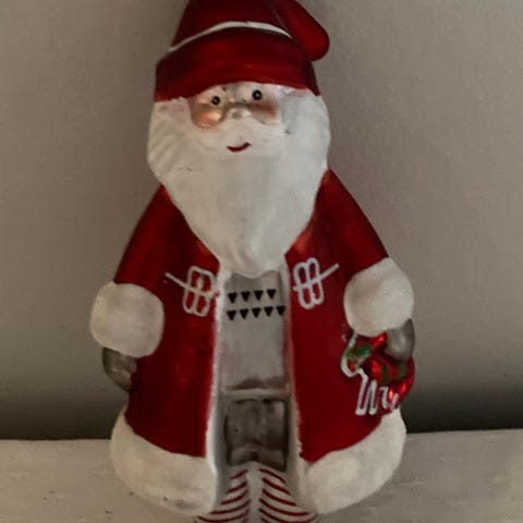 Nissefamilie og juletre i glass, ikke plast, til å henge på ditt eget juletre.
