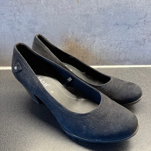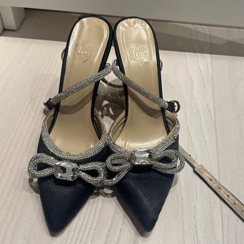 & Other Stories Hæler i størrelse 39. Skoene er svarte og har en åpen tådesign. Brukt materialet gjør unik knust glass effekt. Passer for alle bruks typer