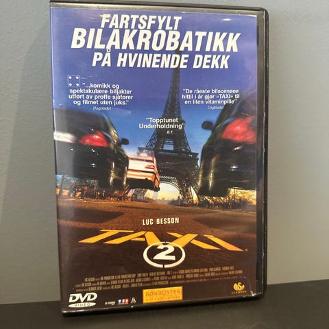 Luc Besson Taxi 3 DVD med spesialfunksjoner inkludert making of og intervjuer. Filmen er en del av Taxi-serien og inneholder action- og komedieelementer.